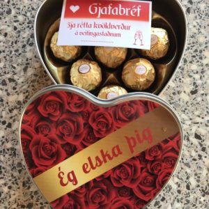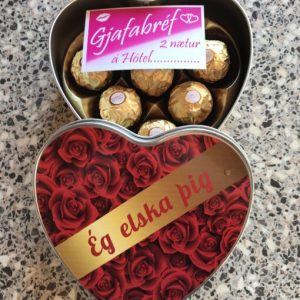 Hjartalaga málmbox með staðlari prentun, eða eftir þinni ósk.