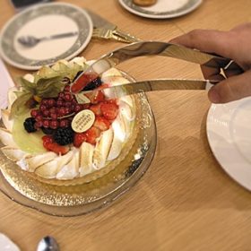 Æðislegur kökuhnífur. Sker í skemmtilegar sneiðar.