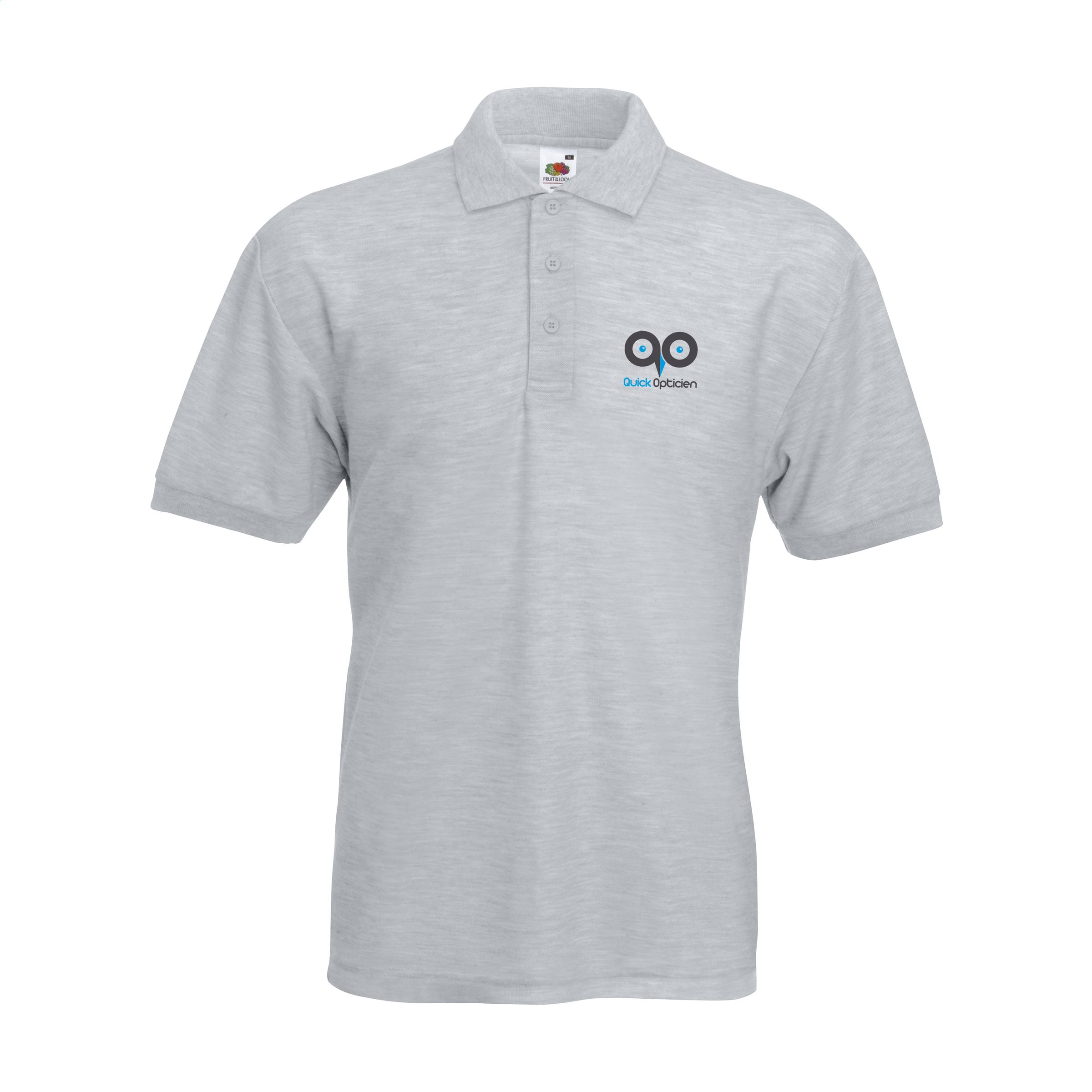 Pique polo shirt for men from the Fruit of the Loom brand • 65% polyester / 35% cotton (white: 170 g / m² and colour: 180 g / m²) • double-stitched seams • straight inset sleeves. Available sizes: S, M, L, XL, XXL and 3XL.